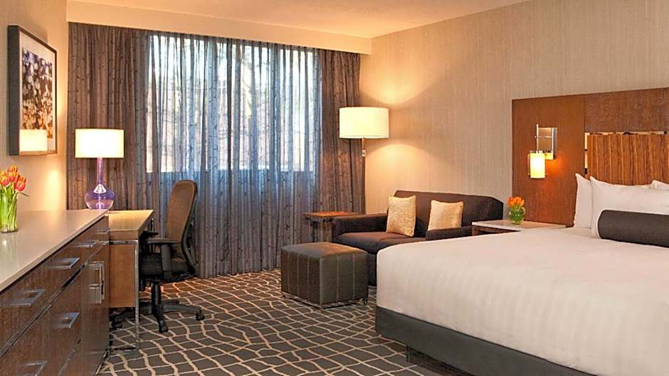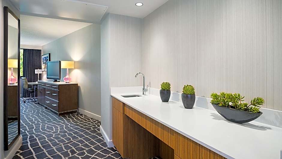 This suite features a seating area with a sofa, a refrigerator, coffee machine, and flat-screen cable TV.